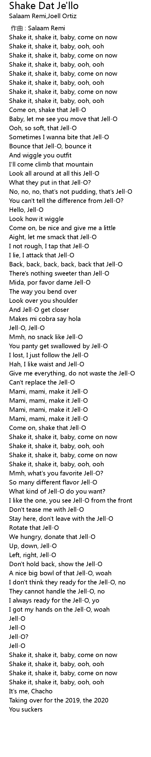 | [00:19.40] | Baby, let me see you move that JellO |