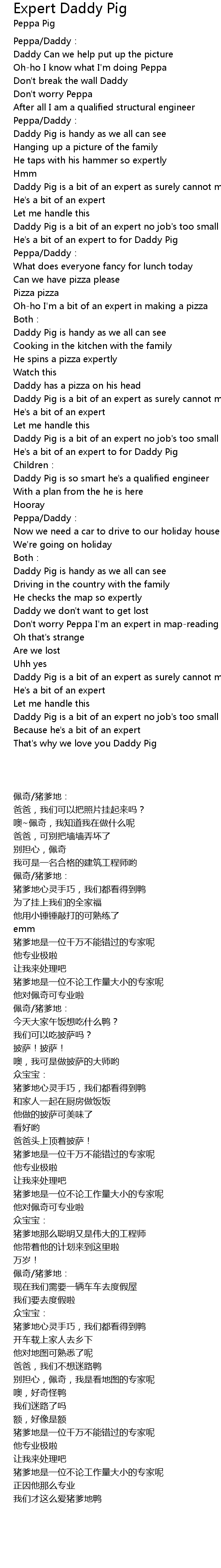 | [00:01.25] | Peppa/Daddy: |
