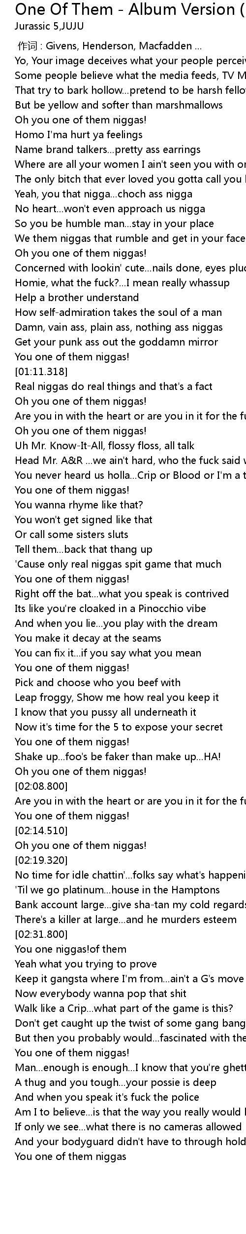 | [02:34.10] | You one niggas! of them |