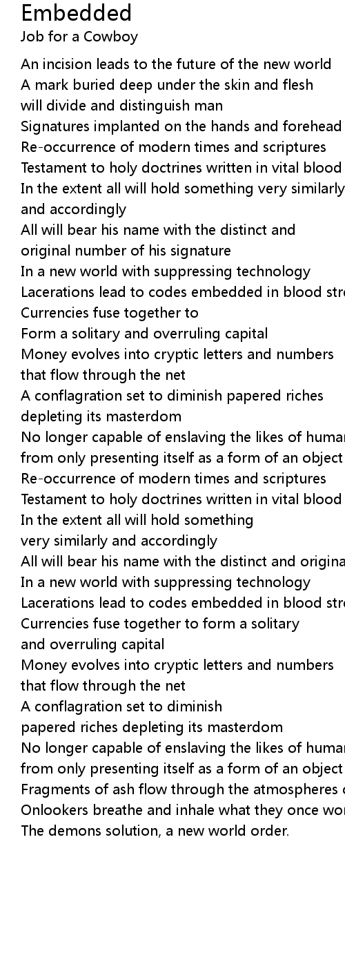Lacerations lead to codes embedded in blood streams beneath the flesh |