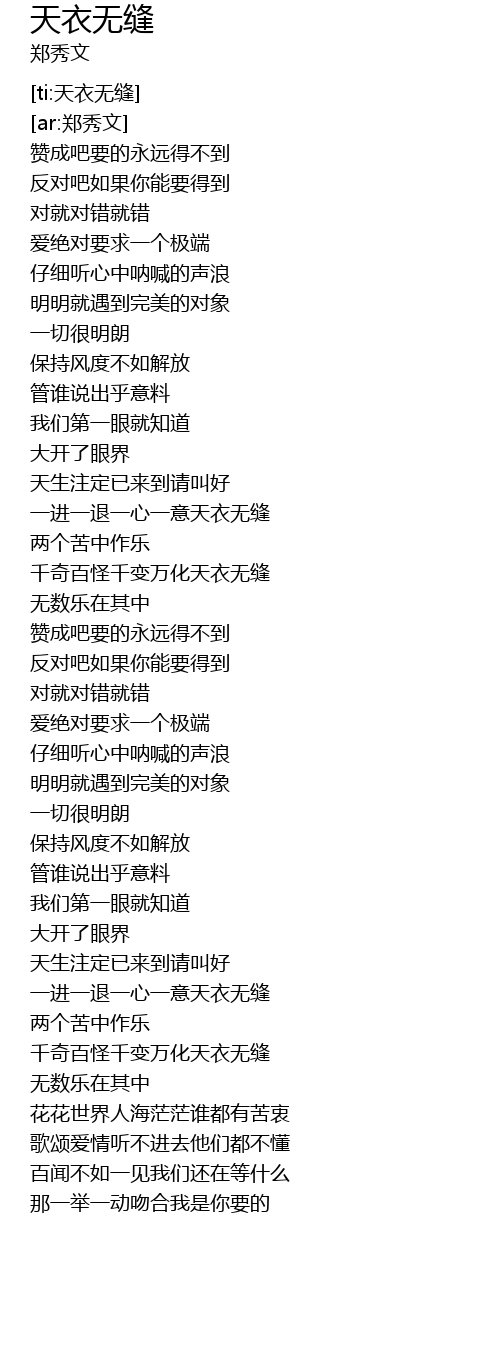 | [02:52.971] | 一进一退一心一意天衣无缝 |