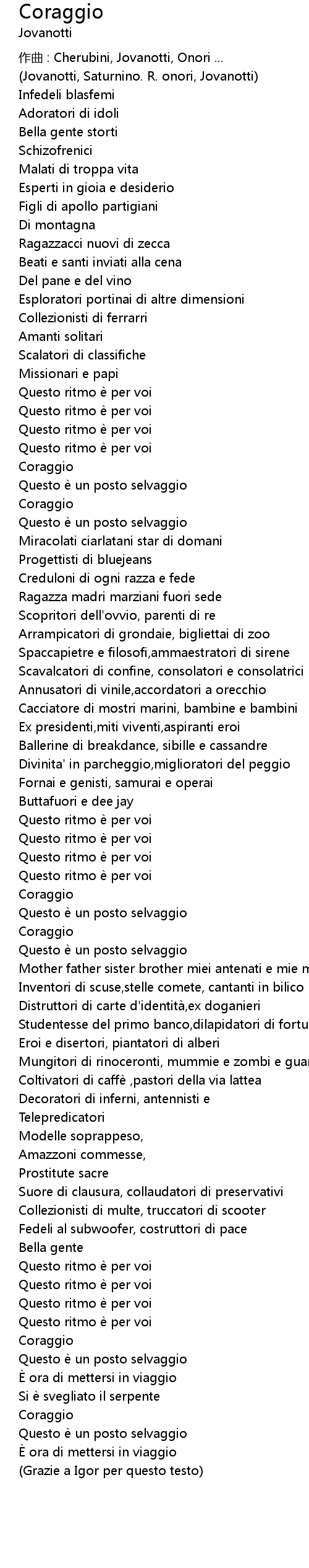 | 作曲 : Cherubini, Jovanotti, Onori ... | |