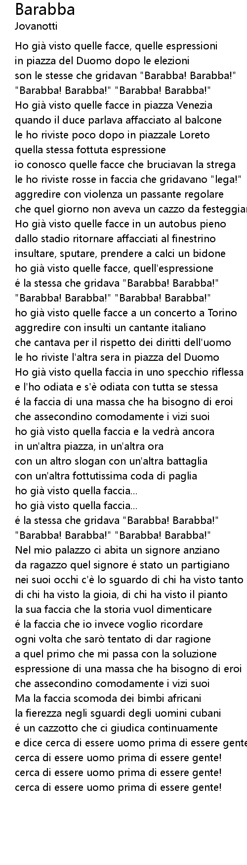 | son le stesse che gridavan " Barabba! Barabba!" | |