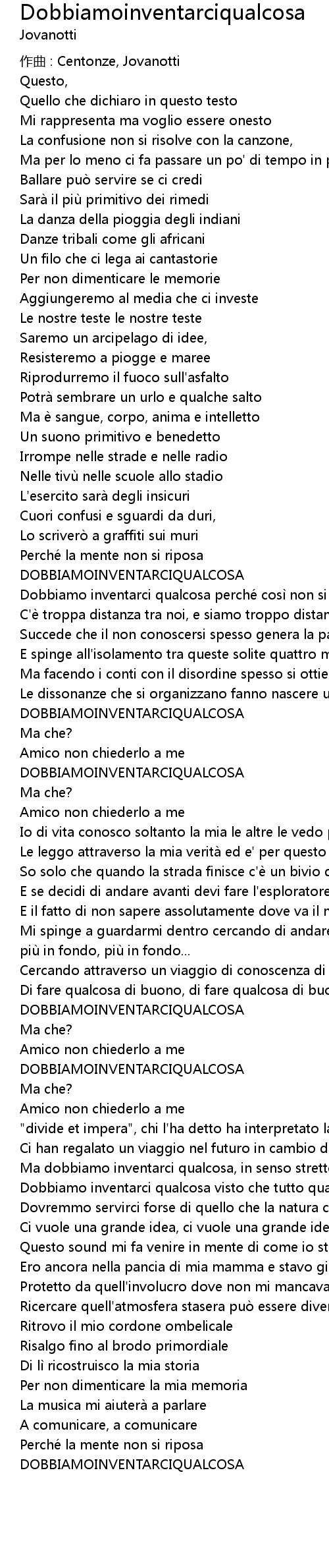 | Dobbiamo inventarci qualcosa visto che tutto quanto e stato gia inventato | |