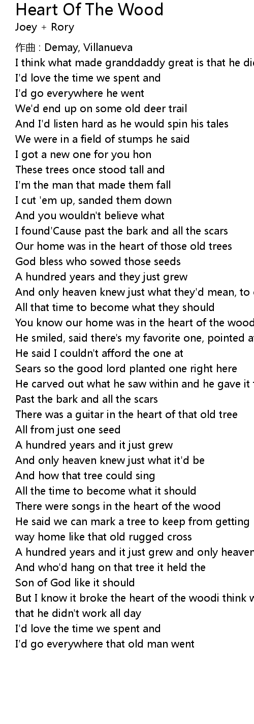 | He said we can mark a tree to keep from getting lostand it'll always point our way home like that old rugged cross | |