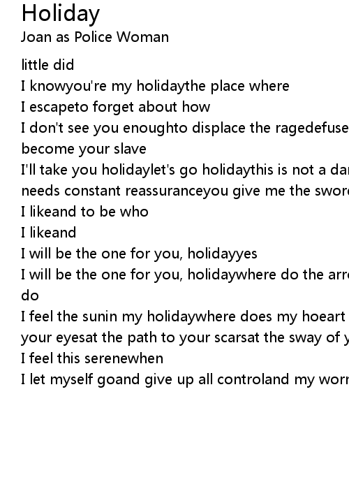 I'll take you holidaylet's go holidaythis is not a dark thought,not from one who needs constant reassuranceyou give me the sword an the powerto slay who |