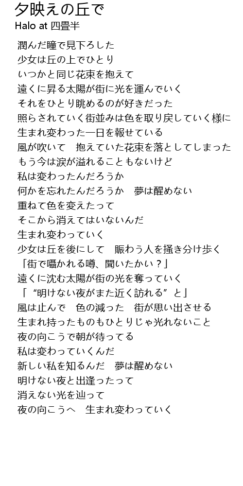 | [02:45.619] | 新しい私を知るんだ 夢は醒めない |