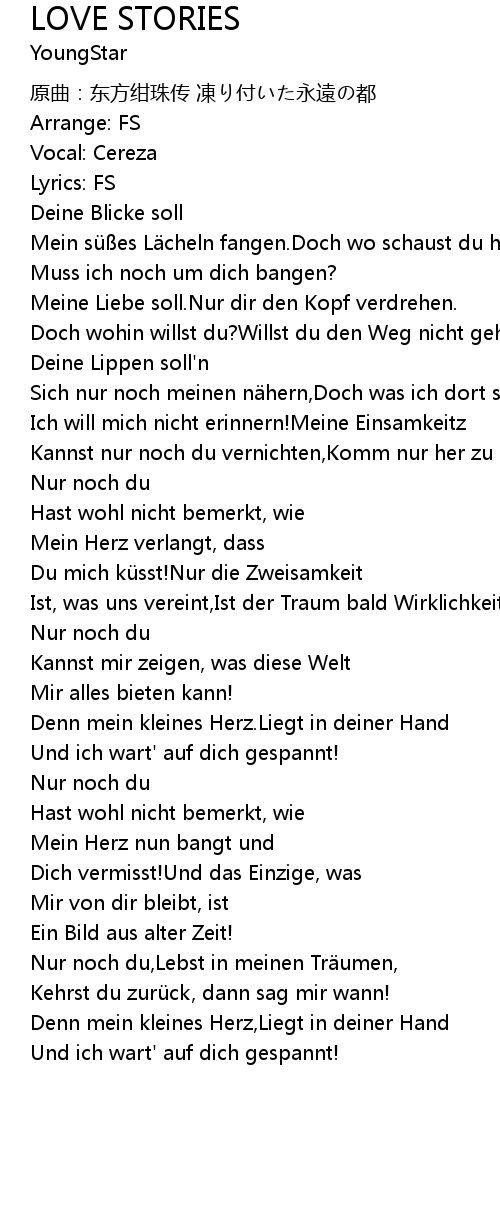 | [00:37.00] | Meine Liebe soll.Nur dir den Kopf verdrehen. |
