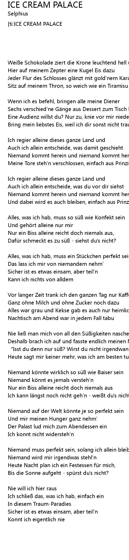 | [00:33.24] | Hier auf meinem Zepter eine Kugel Eis dazu |
