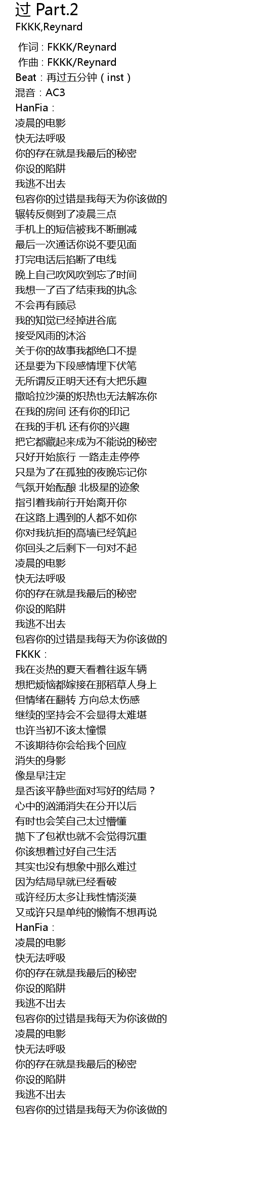 | [00:00.000] | 作词 : FKKK/Reynard |