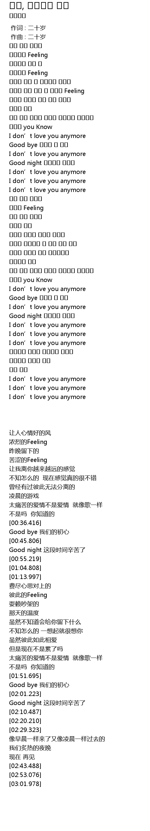 | [02:53.076] | I don' t love you anymore |