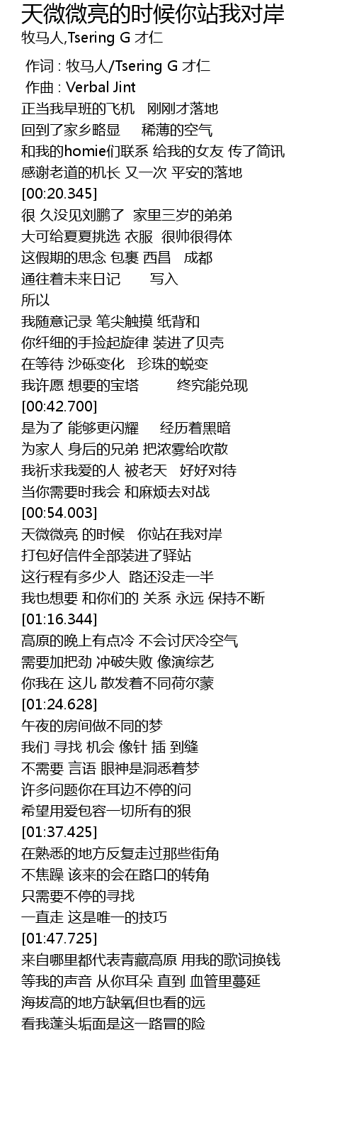 | [00:00.000] | 作词 : 牧马人/Tsering G 才仁 |