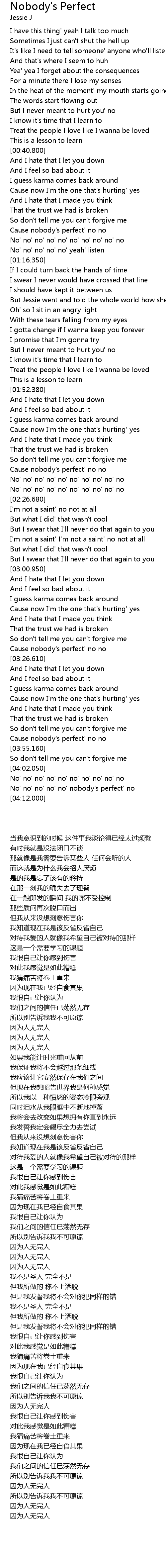 Cause nobody's perfect' no no |