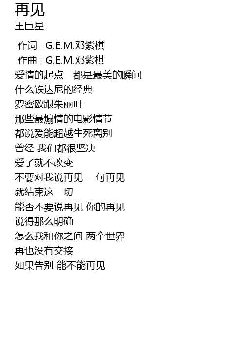 | [00:01.000] | 作曲 : G.E.M.邓紫棋 |