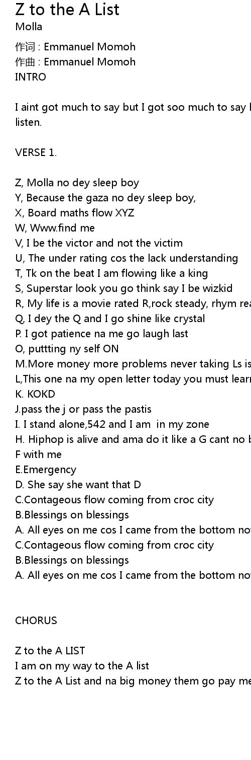 | A. All eyes on me cos I came from the bottom now I am on top of the A LIST | |