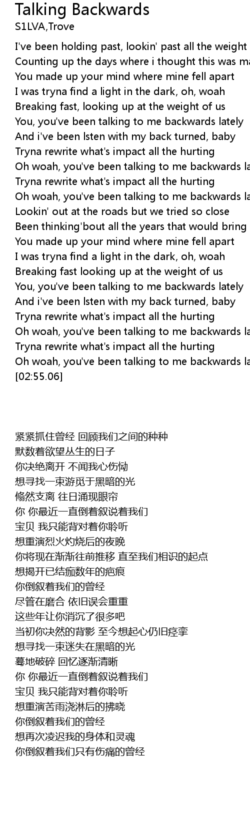 | [00:49.16] | Oh woah, you've been talking to me backwards lately |