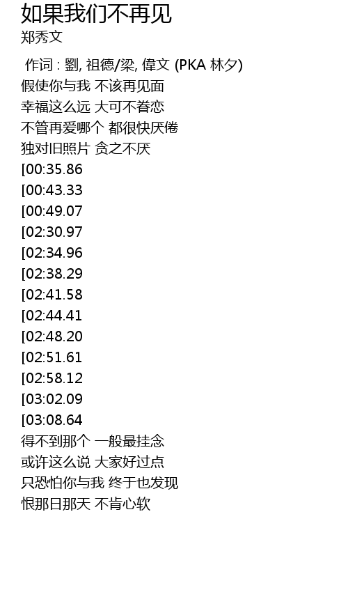 | [03:17.86][02:30.97][00:55.75] | 如何能 和你就此不相见 |