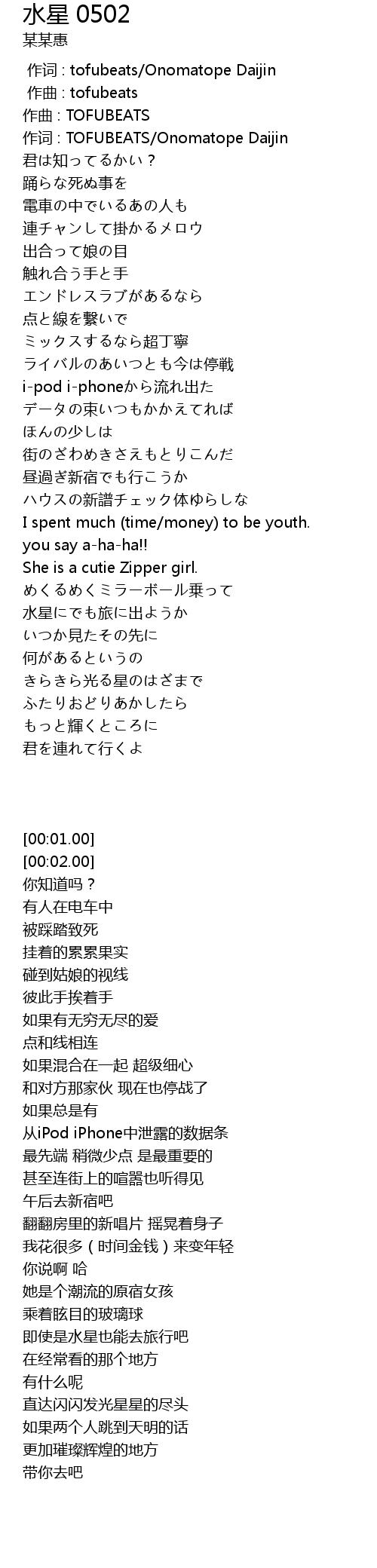 | [00:02.00] | 作词 : TOFUBEATS/Onomatope Daijin |