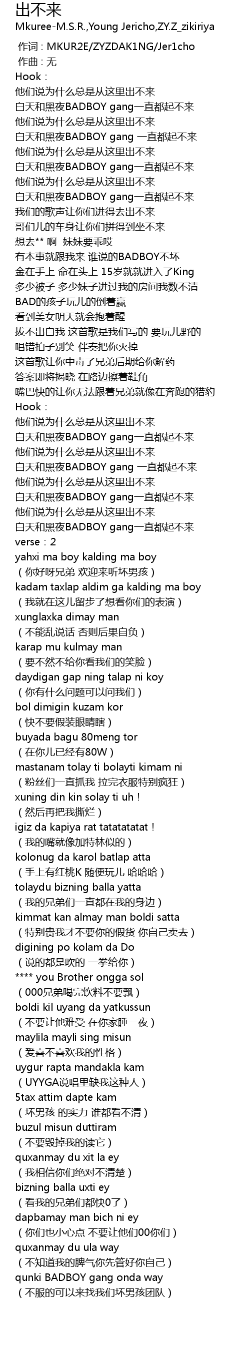 | [01:40.498] | bái tiān hé hēi yè BADBOY gang yī zhí dōu qǐ bù lái |