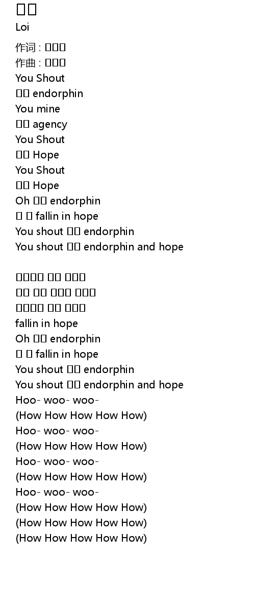 | You shout 나의 endorphin and hope | |