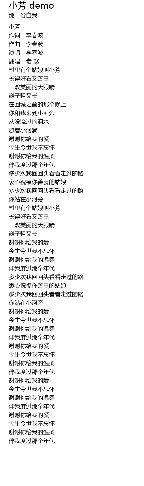 | [00:41.424] | 村里有个姑娘叫小芳 |