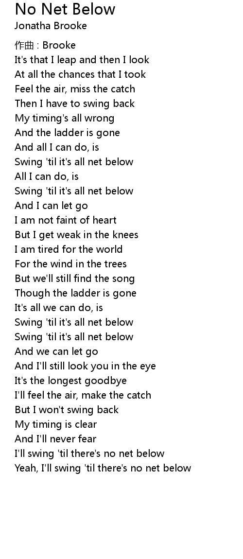 | I' ll swing ' til there' s no net below | |