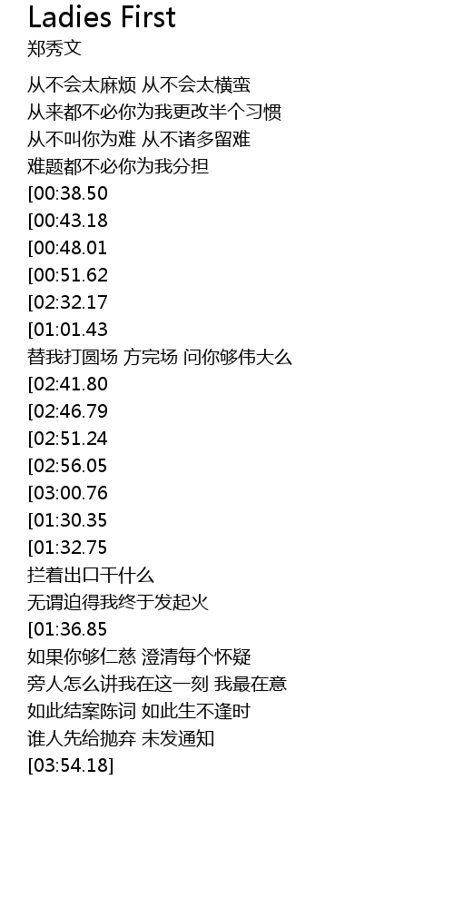 | [02:13.65][00:38.50] | 这种女友亦总算体贴细心 |