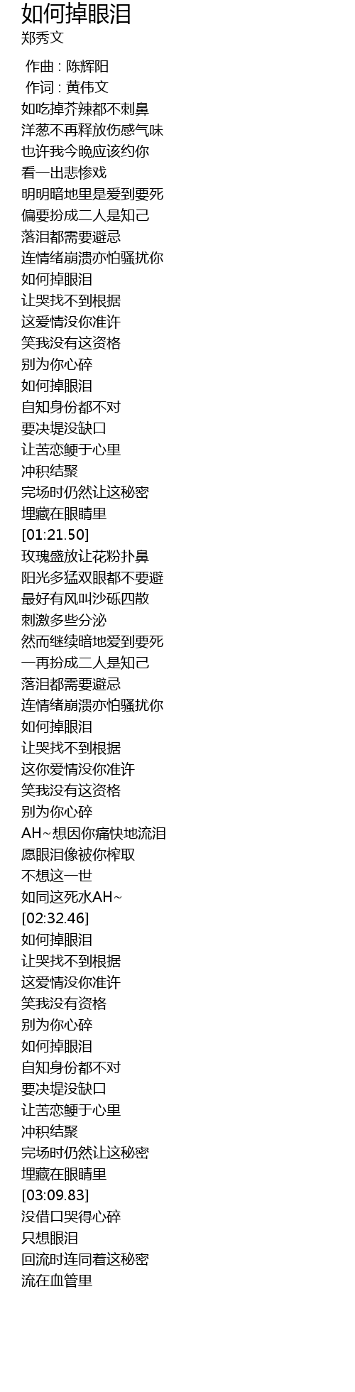 | [03:19.14] | zhǐ xiǎng yǎn lèi |