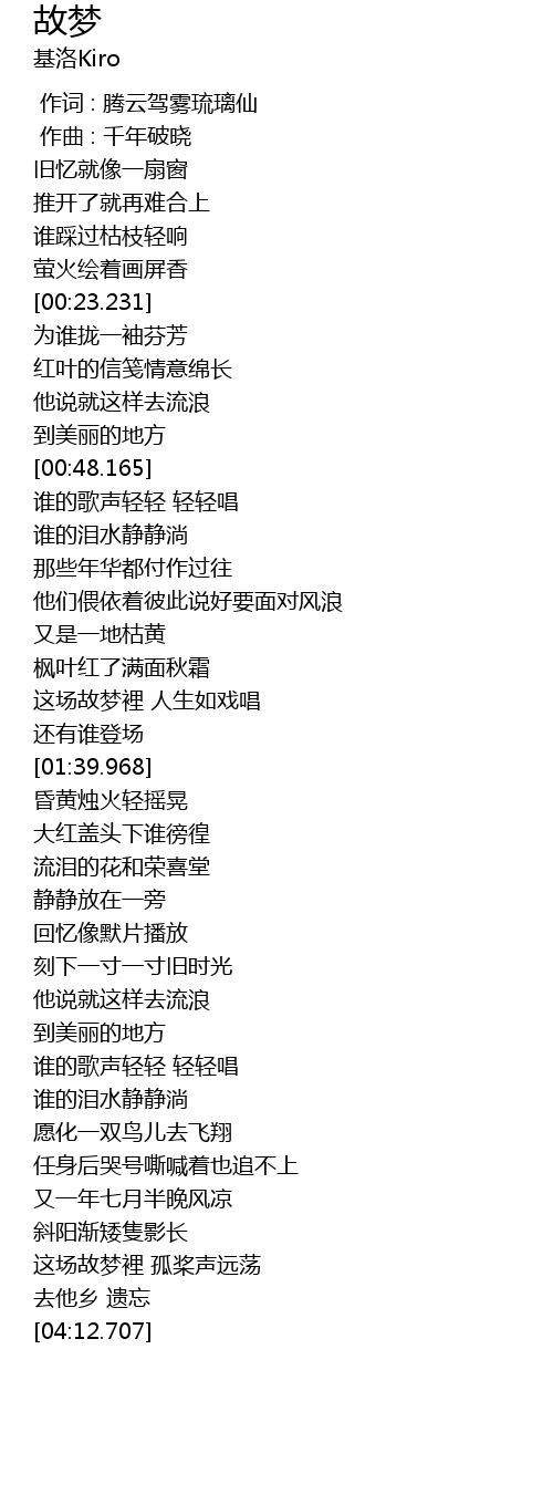 | [01:28.413] | 这场故梦裡 人生如戏唱 |
