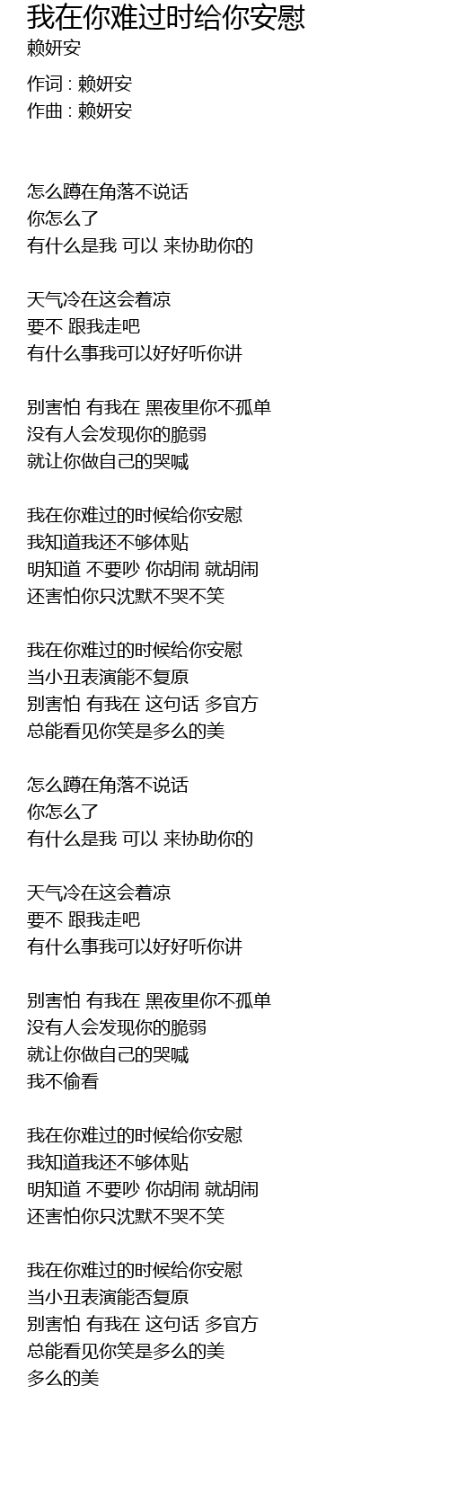 | wǒ zài nǐ nán guò de shí hòu gěi nǐ ān wèi | |