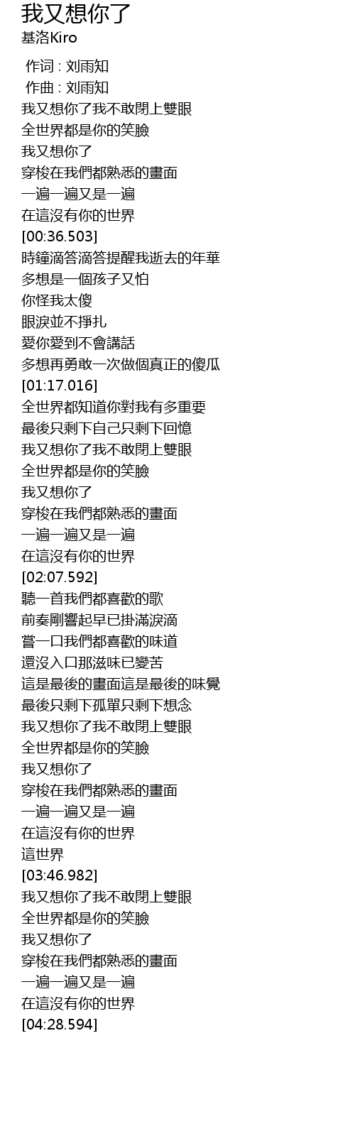 | [03:02.562] | 我又想你了我不敢閉上雙眼 |