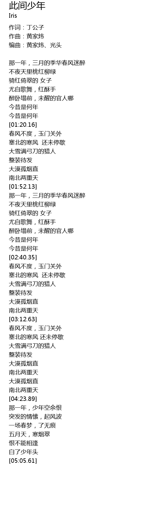 | [05:00.05] | 白了少年头 |