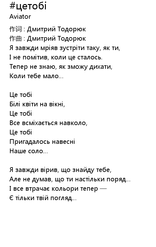 | 作词 : Дмитрий Тодорюк | |