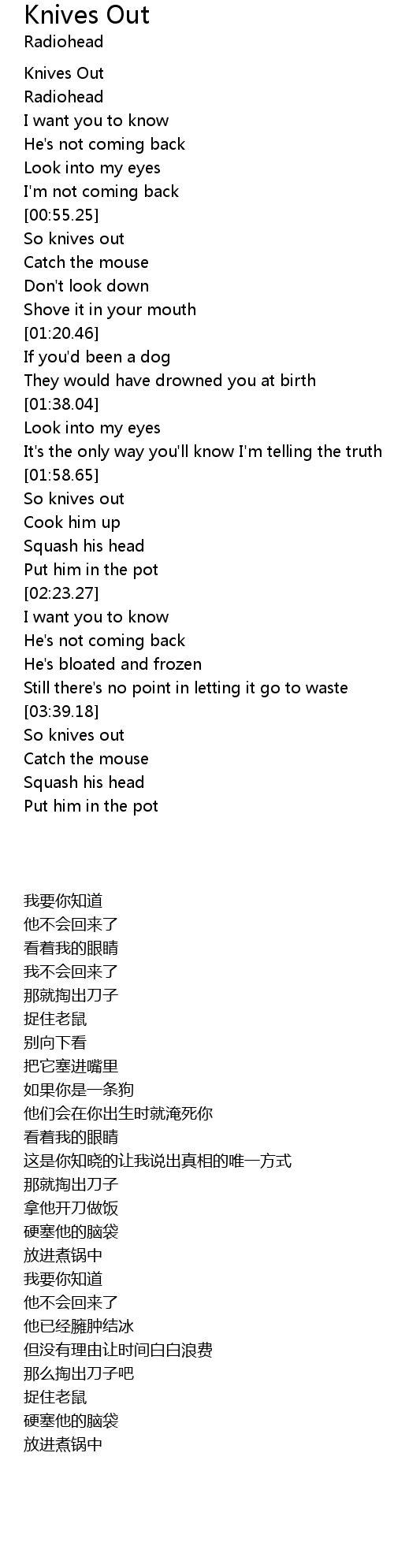 | [00:10.10] | Knives Out |