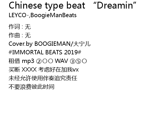 | Song | Chinese type beat “Dreamin” Prod By Immortal Beats |
