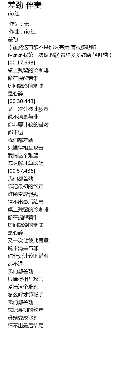 | [00:01.000] | 作曲 : rio红 |