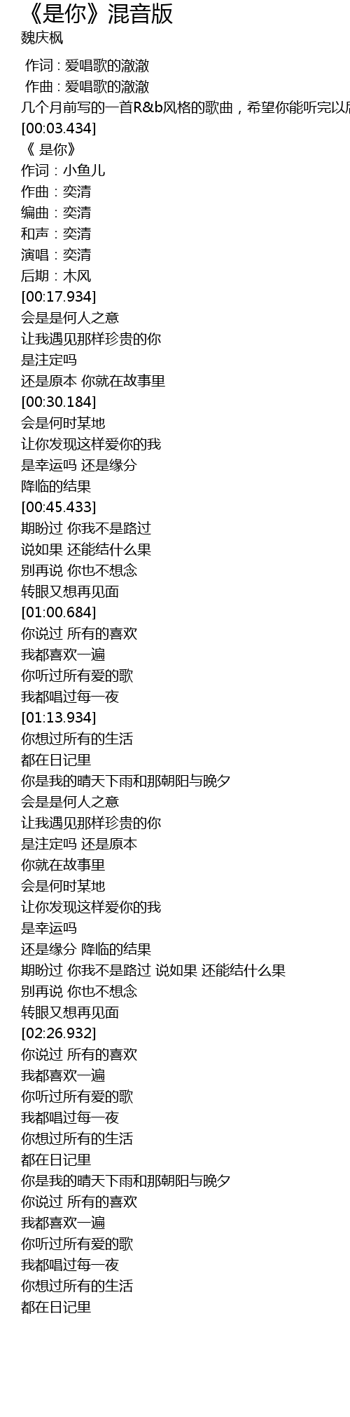 | [02:31.683] | ni shuo guo suo you de xi huan |