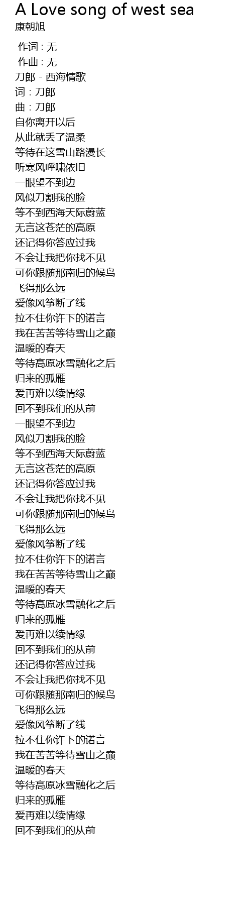 | [00:00.80] | 刀郎 - 西海情歌 |