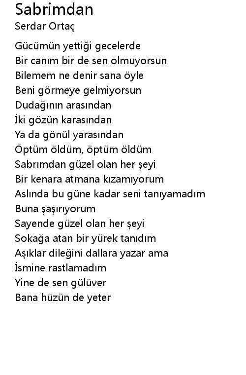 | Sabrımdan güzel olan her şeyi | |