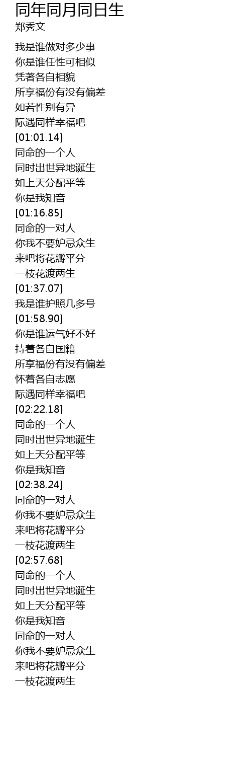 | [01:06.01] | tóng shí chū shì yì dì dàn shēng |