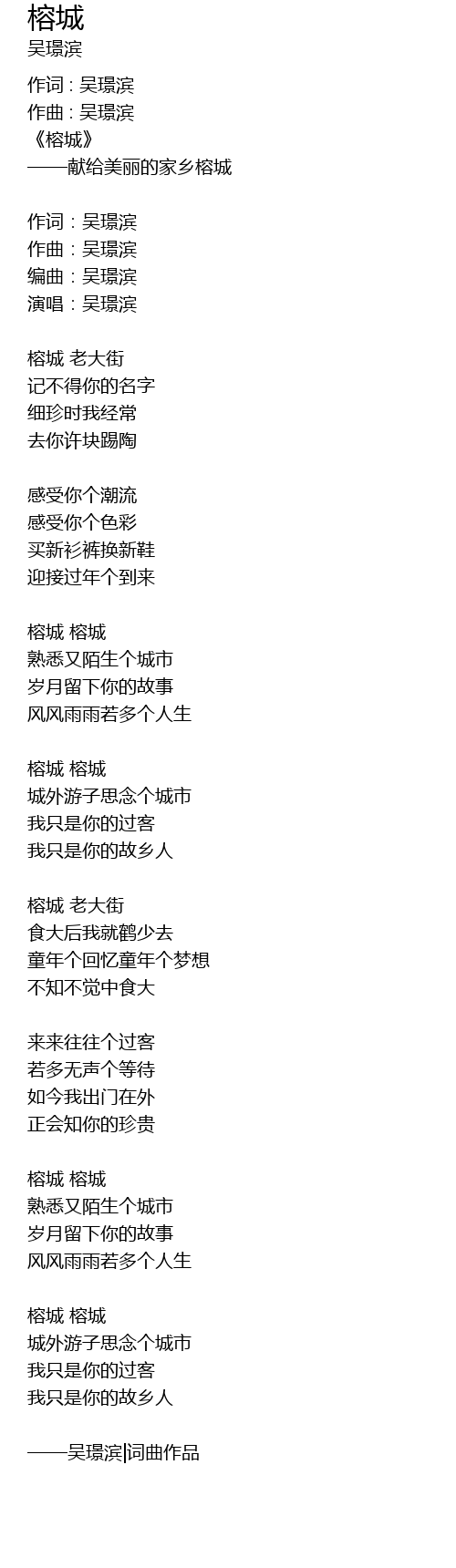 | ——吴璟滨|词曲作品 |