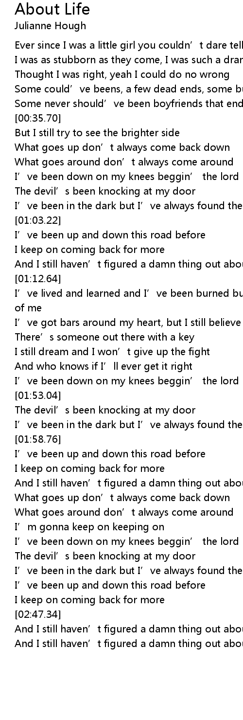 | [01:11.65] | And I still haven’t figured a damn thing out about life |
