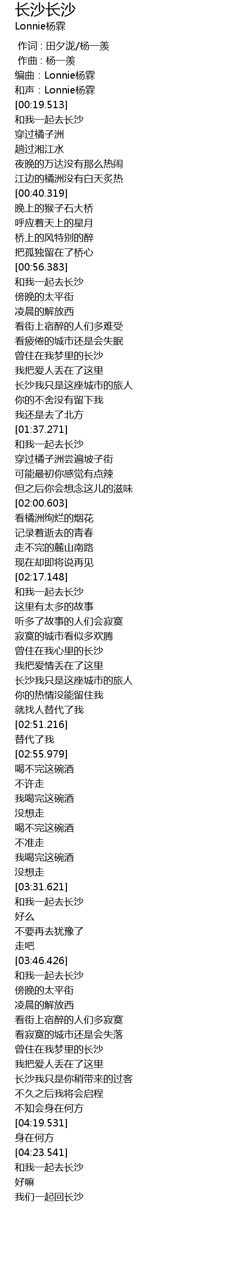 | [04:02.987] | 曾住在我梦里的长沙 |