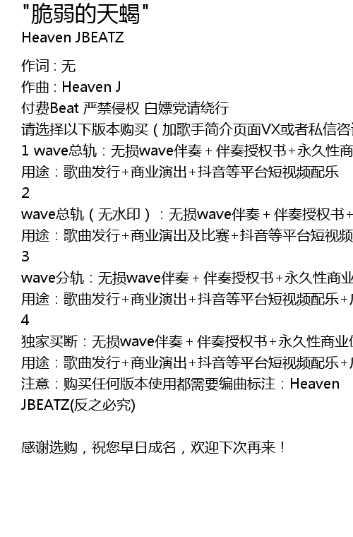 | 注意:购买任何版本使用都需要编曲标注:Heaven JBEATZ(反之必究) | |