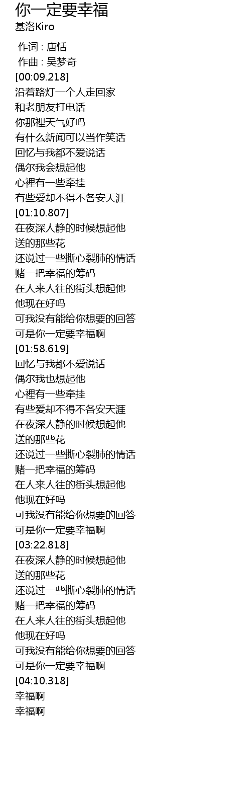 | [03:13.115] | kě shì nǐ yí dìng yào xìng fú a |
