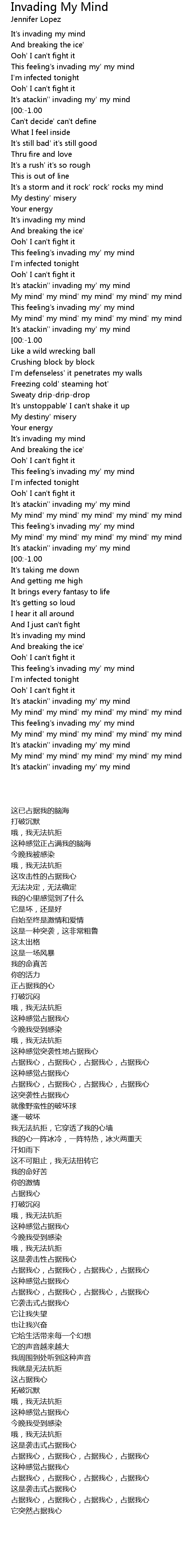It's atackin'' invading my' my mind |