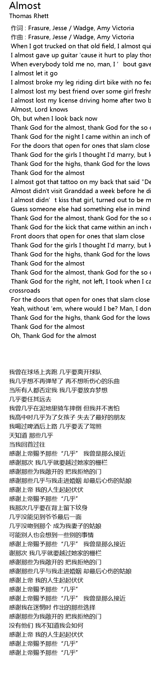| [02:23.344] | Thank God for the almost, thank God for the so close |
