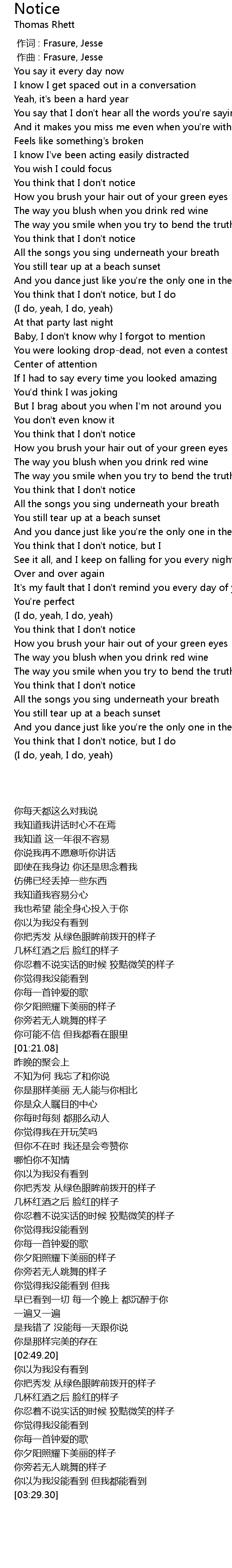 | [01:17.81] | You think that I don' t notice, but I do |