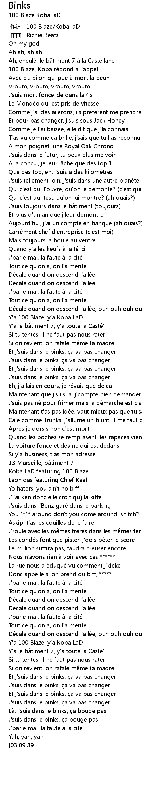 | [02:37.96] | Y'a 100 Blaze, y'a Koba LaD |