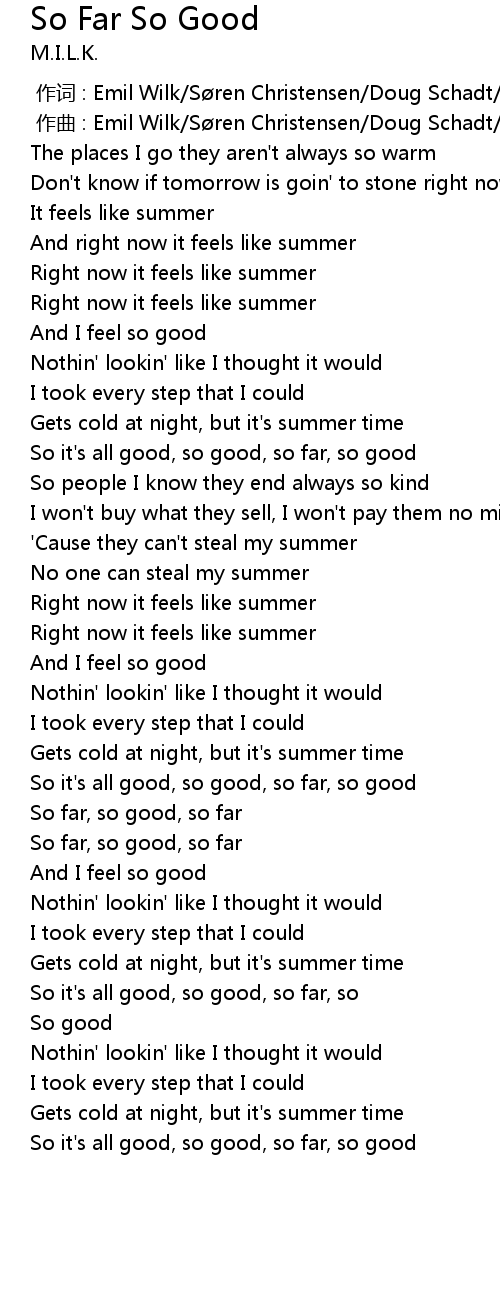 | [02:30.677] | So it' s all good, so good, so far, so good |